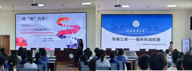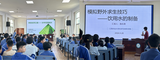 科普团队结合九年级员工的化学基础知识,制作了“体验化学之美—水中花园制作、野外求生技能—饮用水的制备、变废为宝—净水剂的制备、VR视频—自来水的前世今生、骨痛之谜—镉米形成机理”等5个主题视频和动画,走进农大附中九年级的延时课堂进行科普宣讲,课堂上设计了有奖问答、VR视频演示、沉浸式实验等系列活动,员工热情高涨,课堂气氛活跃,师生互动良好。