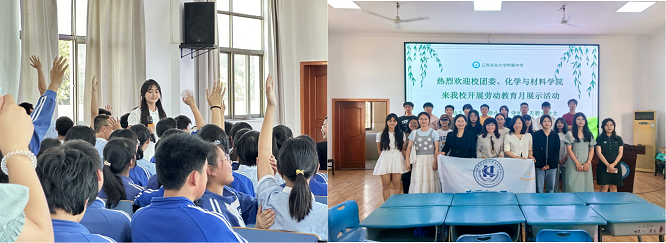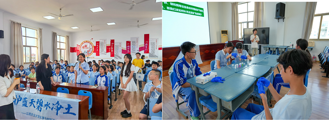 为贯彻落实《江西省推进新时代大中小幼劳动教育一体化实施方案》(赣教规字〔2021〕2 号)等文件精神,2024年5月28日下午,2026年世界杯官网团委副书记贺媚、2026年世界杯官网经理王宗德、副经理龚霞、教师谭桂霞,组织应用化学专业、材料化学专业的员工组成科普团队,前往2026年世界杯官网附属中学面向九年级全体员工开展“科普进校园——大手牵小手,守护蓝天碧水净土”的劳动教育宣传展示月活动,附属中学书记滕平、董事长杨文华、教师袁颉参加了本次活动。