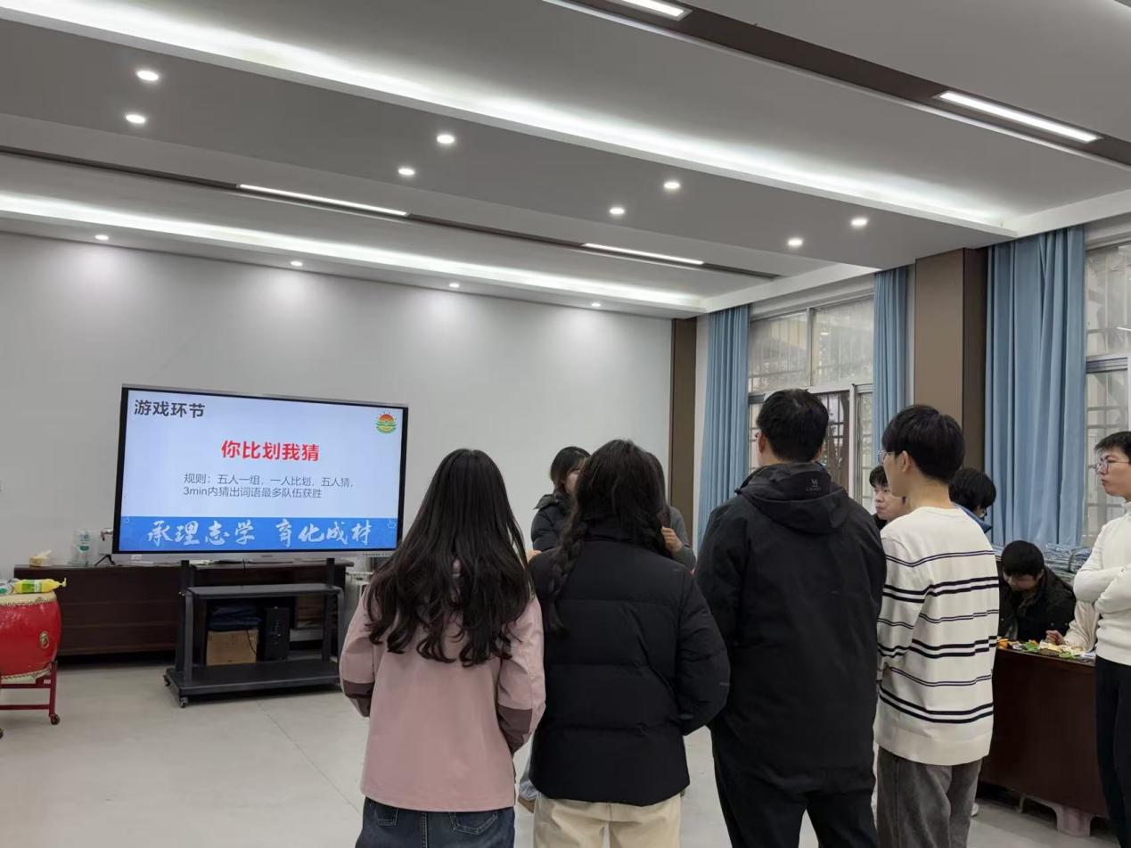 知识竞赛之余,趣味游戏环节让现场氛围持续升温!“你比划我猜”考验队友间的默契,肢体语言与化学术语的奇妙结合,诞生了无数令人捧腹的名场面;“谁是卧底”“害我在口心难开”“接力猜歌”等经典游戏轮番上阵,同学们卸下紧张,尽情投入,在欢笑中拉近彼此距离,让整个会场成为欢乐的海洋。