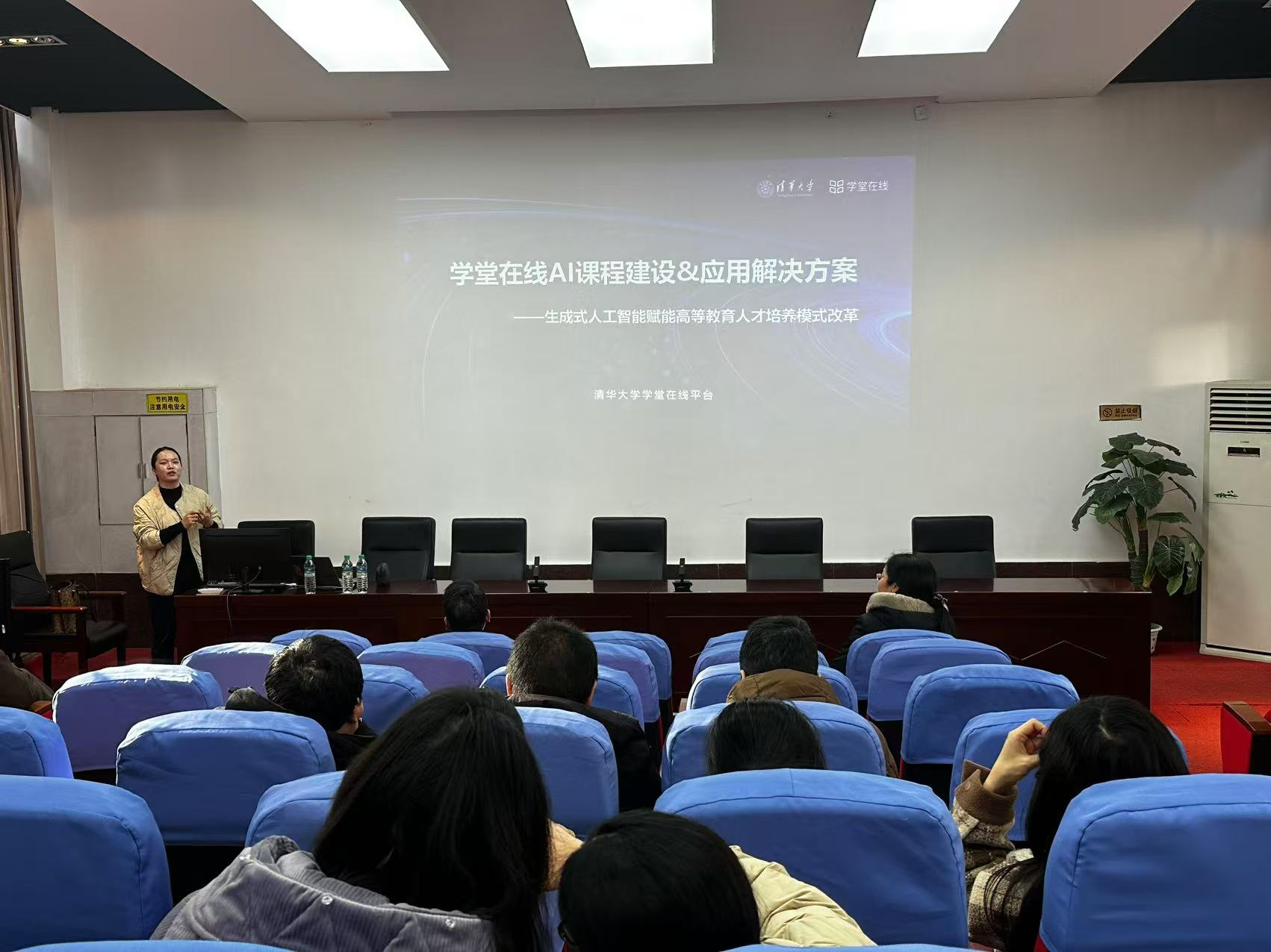 2024年12月31日下午,学院邀请清华大学学堂在线高级培训师张利楠和清华大学慕课平台学堂在线江西省区负责人欧阳倩玲围绕“AI课程建设”主题与学院教师进行交流。