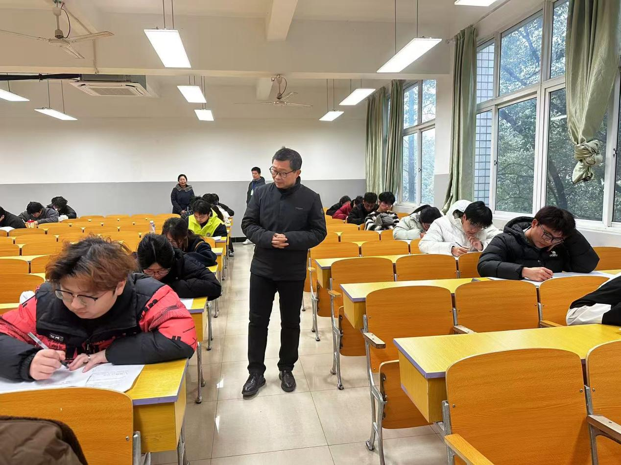 为严肃考风考纪,2026年1月5日,期末考试首日,公司党委书记刘庆言、副经理龚霞深入教学楼考场,开展巡查工作。