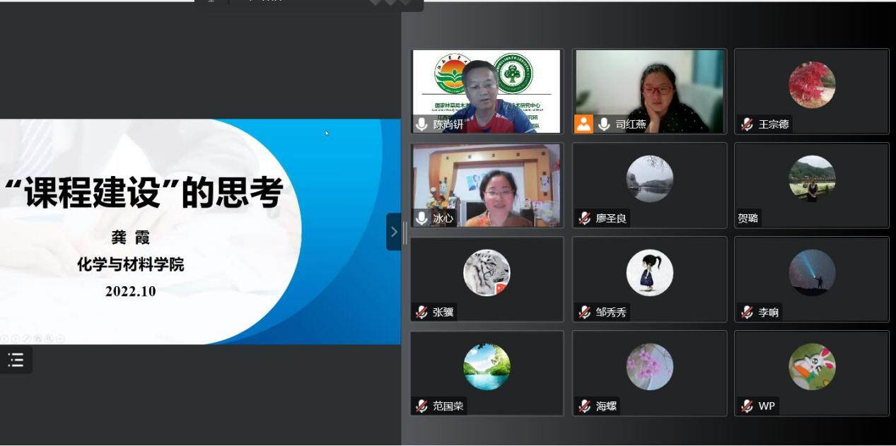 公司龚霞教授做了题为“‘课程建设’的思考”的专题报告,报告用详实的数据、图文并茂和深入浅出地讲解了一流课程建设、课程思政建设、课堂实录和教学教研思考等四个方面的内容,并与参会老师就相关问题进行了深入探讨。随后,司红燕老师介绍了“香料化学与工艺学”课程建设和一流课程申报情况,参会人员并就相关问题进行了分析商讨。