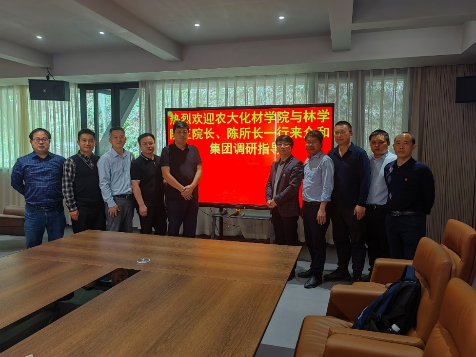 2023年4月15日,应江西众和集团邀请,学院经理王宗德、副经理卢丽敏和黄喜根、陈金珠、彭大勇、黄建平老师及林学院植物天然产物与林产化工研究所副所长陈尚钘、廖圣良老师前往江西众和集团,就校企合作、访企拓岗、员工工作等进行深入交流研讨。