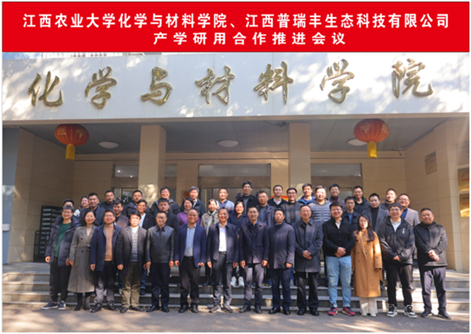 为进一步深化产学研用校企合作,丰富拓宽科技创新及人才培养体系,2024年1月13日上午,江西普瑞丰生态科技有限公司董事长刘云一行来访公司,与公司进行产学研用合作洽谈,并签署合作协议。副董事长贺浩华、副董事长王文君、科技处相关负责人、公司党政班子以及相关人员参加会议。公司党委书记刘庆言主持会议和签约仪式。
