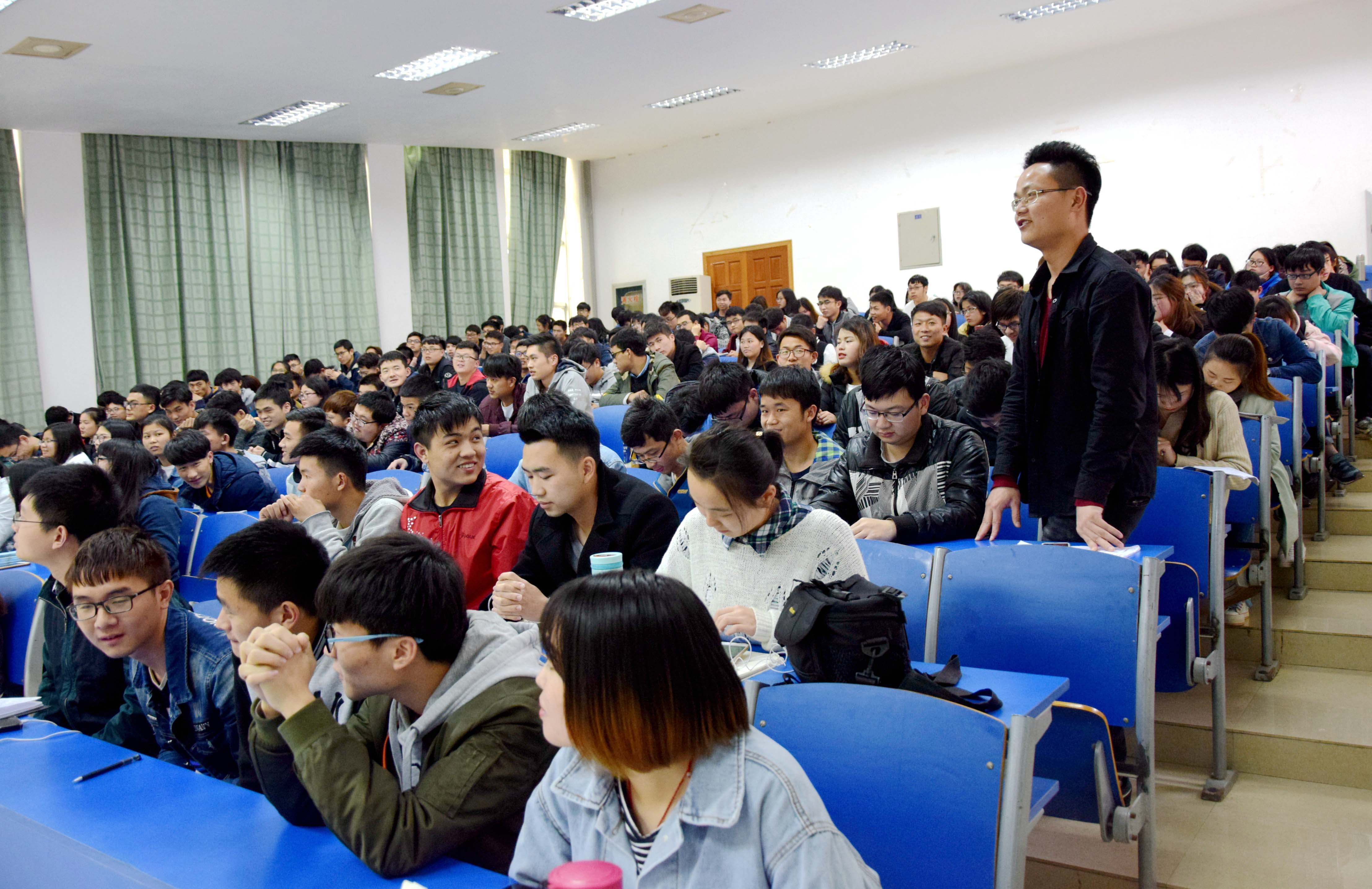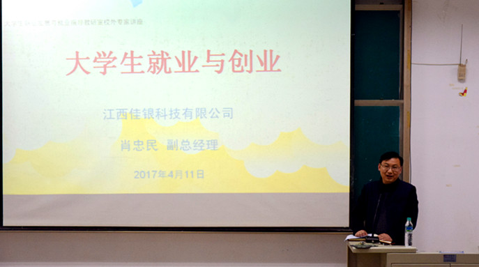 4月11日,理学院就业指导服务中心组织专家进课堂活动,邀请江西佳银科技有限公司肖忠民副总经理为全体大三员工做了 “老员工就业与创业”的报告。