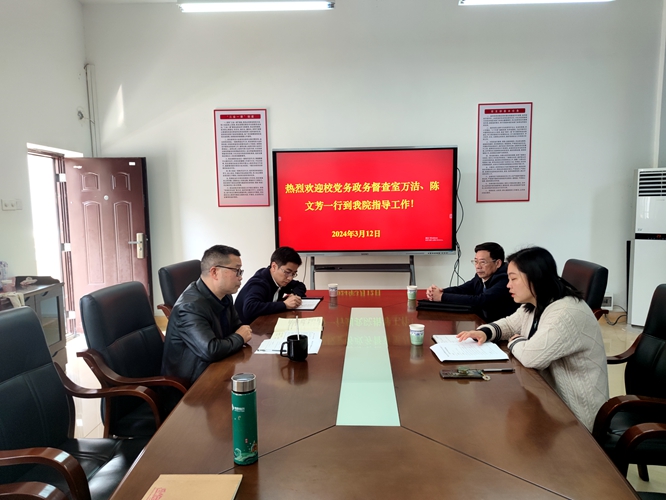 2024年3月12日10:00,公司党务政务督导组副主任万洁、正处级督导员陈文芳到公司开展学校第四次党代会氛围营造和中共中央颁布“三个条例”学习宣传情况专项督查,公司党委书记刘庆言、员工党总支书记彭玉萌及党委组织员廖超参与本次督查座谈会,会议由刘庆言主持。