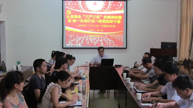 7月3日下午,按照学校开展“三严三实”专题教育实施方案的要求,根据学院工作安排,理学院在党员之家组织开展了“三严三实”专题教育党课活动,全院教职工党员听取了党课。党课主讲人为公司党委书记彭小波。