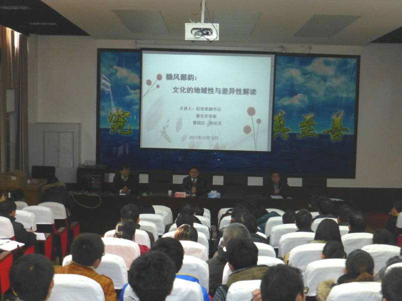 12月18日下午,理学院120多名师生齐聚学院报告厅,聆听了公司党委副书记曹国庆研究员作的题为《赣风鄱韵:文化的地域性与差异性解读》的讲座。公司党委书记彭小波主持。
