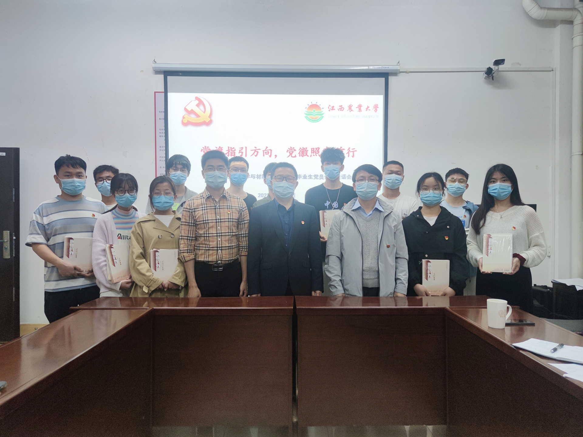一套书籍就是一次灵魂升华。江西是一片“红土地”,红色资源遍布赣鄱大地。为充分发挥江西红色文化的育人功能,学院领导为每位毕业生党员赠送了《井冈山精神》、《长征精神》、《苏区精神》三本红色书籍。“有信念、有梦想、有奋斗、有奉献的人生,才是有意义的人生”,通过宣读《给毕业生党员的一封信》、重温入党誓词,勉励党员们在学思践悟中坚定理想信念,在奋发有为中践行初心使命,以实际行动走好新时代的长征路,在青春的赛道上奋力奔跑,争取跑出当代青年的最好成绩。