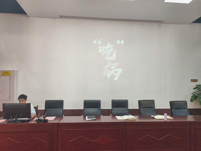 会上,全体教职工集中观看了党风廉政建设警示教育片《吃祸》。