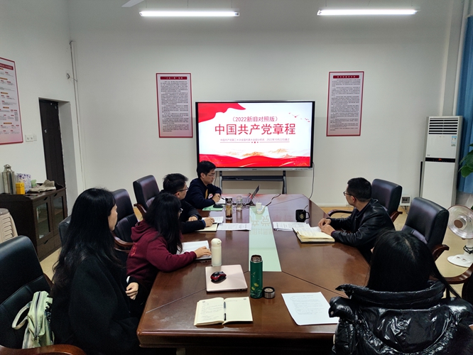 会议伊始,员工党总支书记彭玉萌带领大家先后学习了《中国共产党纪律处分条例》(修订)、《党史学习教育工作条例》、《中国共产党巡视工作条例》(修订)、《中国共产党章程》及《中国共产党普通高等学校基层组织工作条例》。