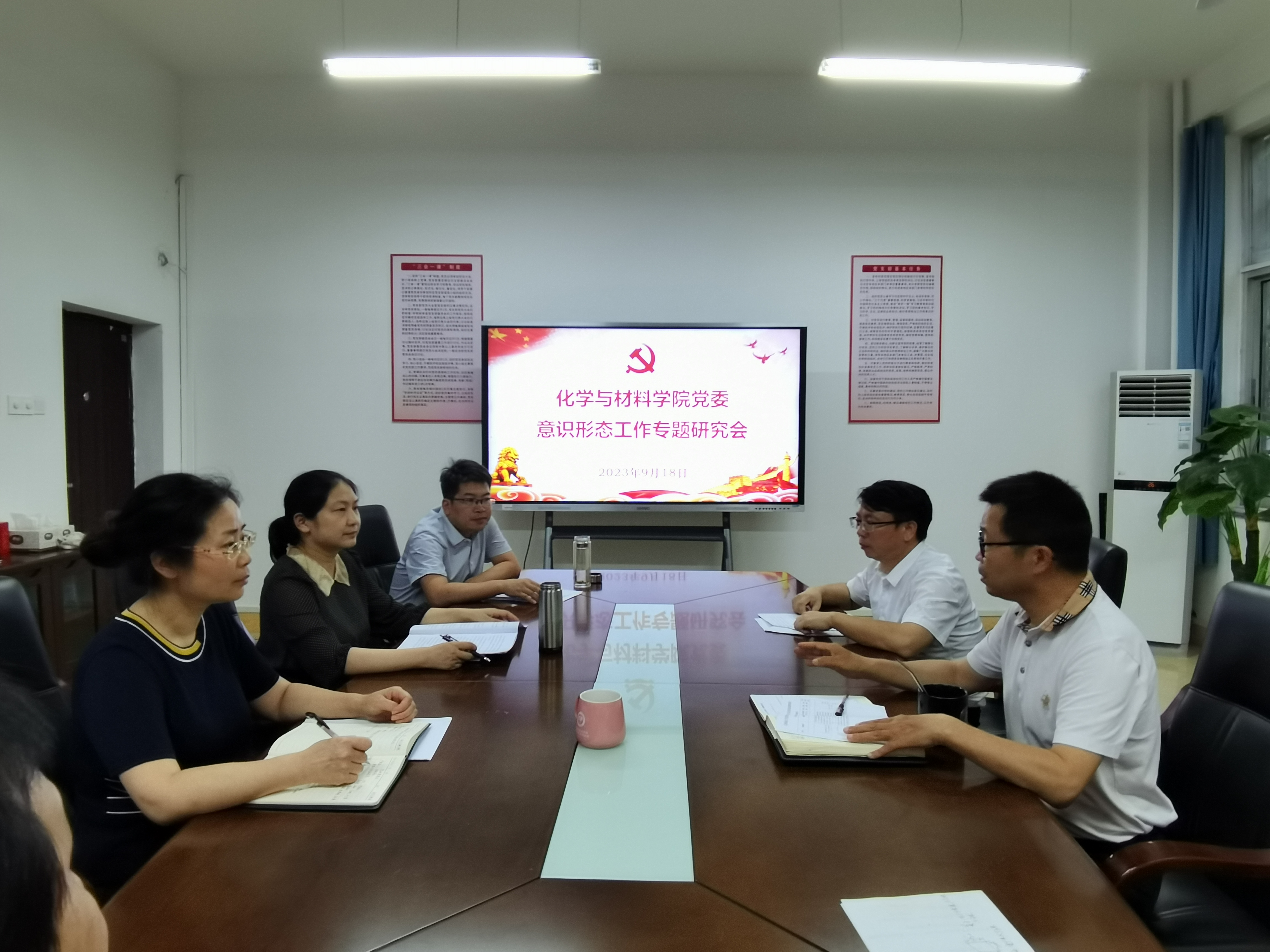 2023年9月18日9:00,公司党委意识形态工作专题研究会在致理楼215会议室召开。学院全体党委委员参会,副经理龚霞及相关行政人员列席会议,会议由公司党委书记刘庆言主持。