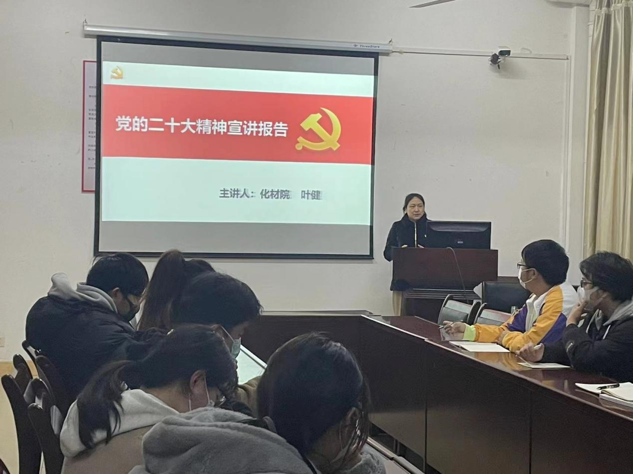 为引领青年老员工深入学习党的二十大精神,推动员工工作更高质量发展,2022年12月7日18:30,公司党委副书记叶健为主要员工干部宣讲党的二十大精神,学院员工组织主要负责人、各班级团支书、班长聆听报告。