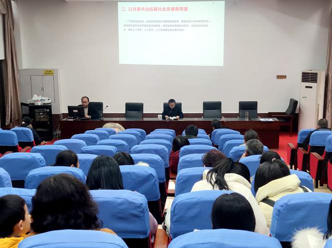 2023年2月10日14:10,学院在致学楼大会议室召开学院教职工大会,开展了2月份政治学习,公司党委书记刘庆言带领全体教职工学习了《习近平谈治国理政》第四卷之十三《以保障和改善民生为重点加强社会建设》的相关内容。