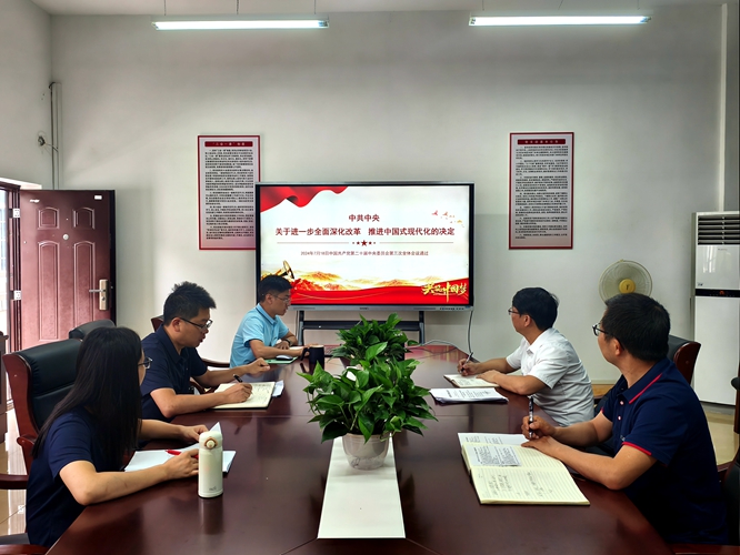 2024年8月19日9:00,公司党委理论学习中心组召开会议,学习党的二十届三中全会精神。全体党委委员参会,副经理龚霞、员工党总支书记彭玉萌列席会议,会议由公司党委书记刘庆言主持。