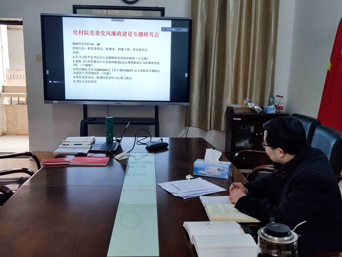 刘庆言作总结讲话。强调2023年伊始,学院就及时召开党风廉政建设及师德师风建设工作专题研究会,意义重大,表明公司党委高度重视党风廉政建设及师德师风建设,表明公司党委全面从严治党的决心与态度,为今年全面贯彻落实党的二十大精神开好了头、起好了步,为全年推进工作目标打下了坚实的思想政治基础。对公司2023年党风廉政建设及师德师风建设工作,他提出三点意见:一是要提高政治站位,坚决执行中央八项规定及《中国共产党廉洁自律准则》等党内规章制度,强化《中国共产党章程》学习;二是各级领导干部要带头示范执行好八项规定及优良的师德师风,为师生做好表率;三是各级领导干部要积极营造风清气正、干事创业的良好氛围,创造风清气正、干事创业的良好条件,打好风清气正、干事创业的良好基础,奋力推进化材院高质量发展。