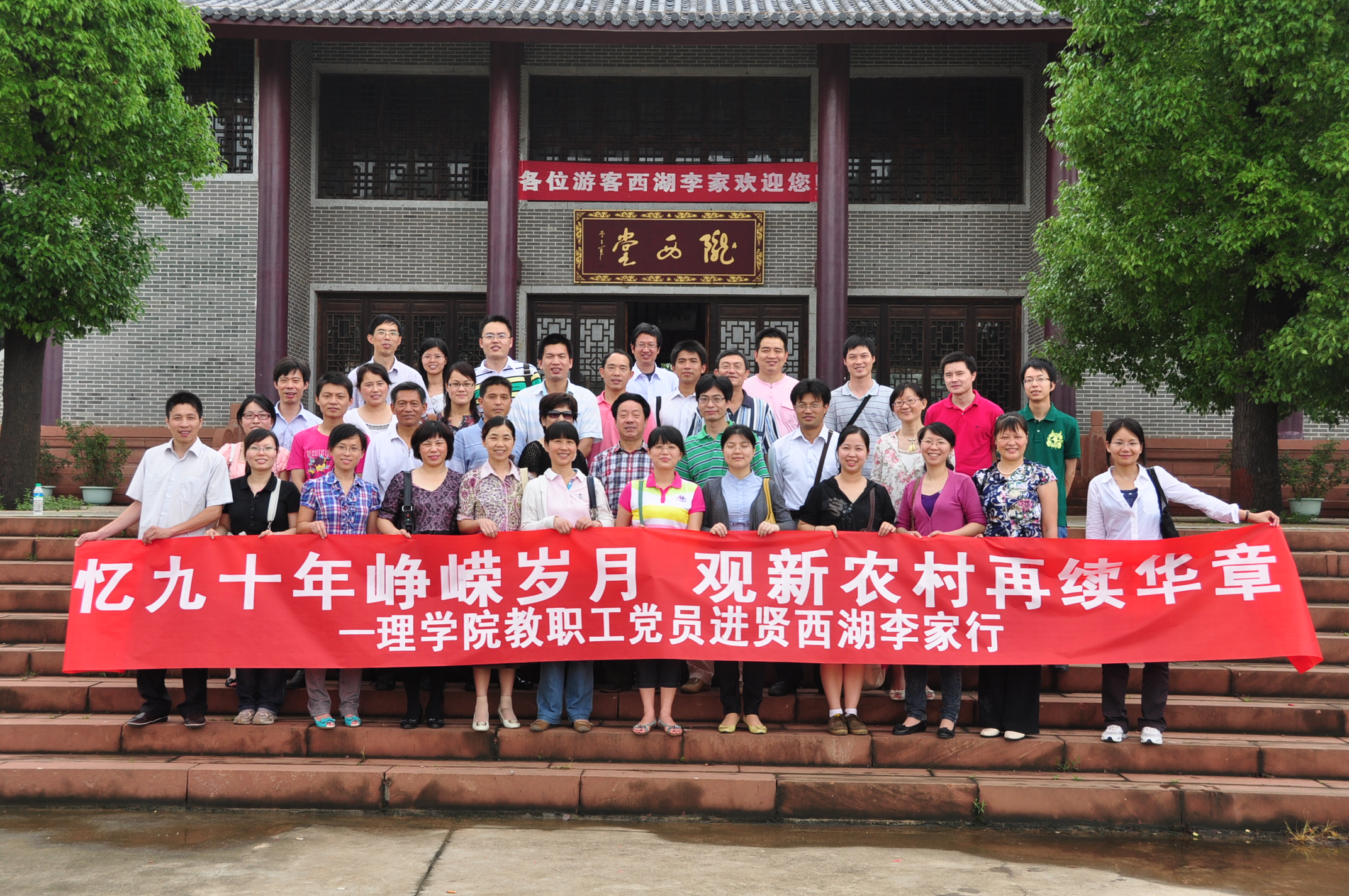 在建党九十周年之际,为加强教职员工的思想政治教育,培养教职员工团结拼搏、超前发展的意识,2011年6月7日,理学院组织教职员工党员参观了位于进贤县前坊镇西湖李家,感受新农村建设。理公司党政领导以及全体教职员工党员参加了此次活动。