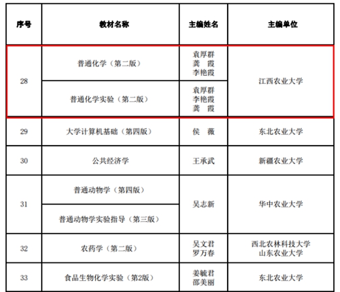 根据《全国农业教育优秀教材资助项目评选办法》(基金会〔2020〕15号)和《中华农业科教基金会关于开展2023年全国农业教育优秀教材资助项目评选工作的通知》(基金会〔2023〕7号)要求,经学院组织申报,学校推荐,全国农业教育优秀教材评选委员会专家组评选,中华农业科教基金会审核确定,于2023年12月20日公布了全国农业教育优秀教材评选结果,公司共3部教材获奖,公司有2部。公司袁厚群、龚霞、李艳霞主编的《普通化学》教材和《普通化学实验》教材获评全国高等农业院校优秀教材。