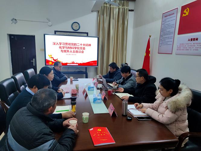 会上,龚霞、黄建平、彭大勇几位民主党派人士及高知联成员温世和围绕“如何在化材院积极落实党的二十大精神?”及“如何贯彻落实党的二十大精神,促进化材院高质量发展?”两个问题,分别从团队建设、教材编写、员工教育、员工工作及资产管理等多个方面提出了意见及建议。随后,卢丽敏、叶健分别就党外人士的意见及建议谈了自己的体会;经理王宗德结合学院实际肯定了党外人士的意见和建议,对他们提出的问题一一作了答复,并介绍了学院“十四五”的规划和发展。