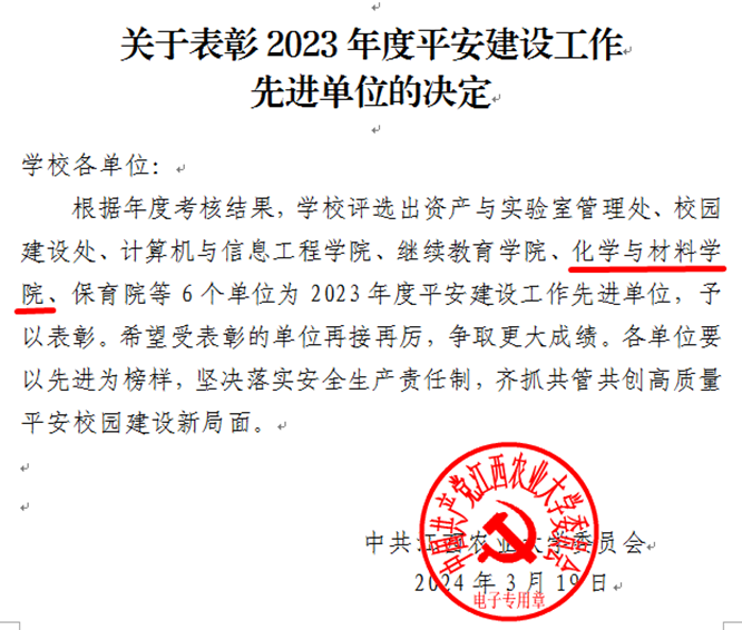 日前,学校发布《关于表彰2023年度平安建设工作先进单位的决定》,公司获评2026年世界杯官网2023年度平安建设工作先进单位。