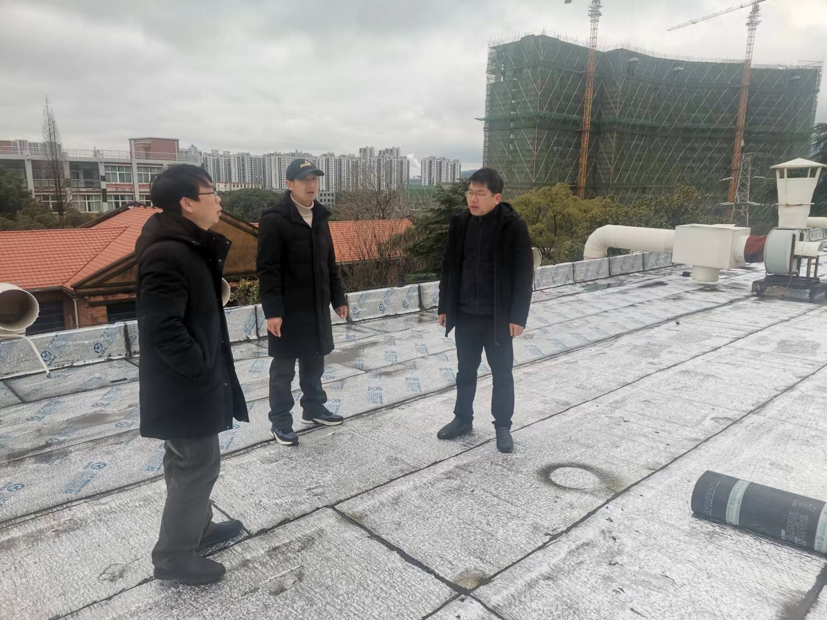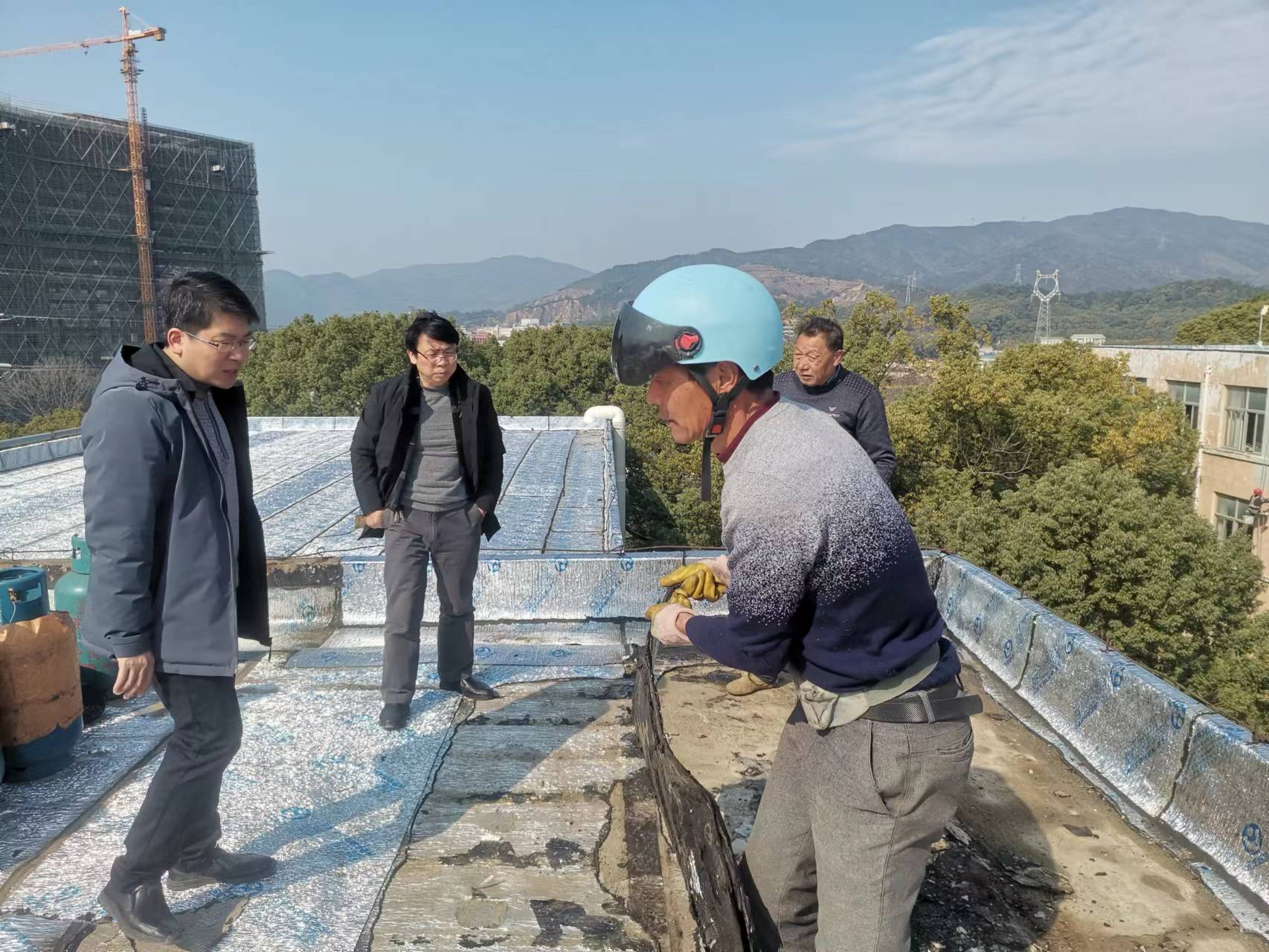 学期伊始,为了进一步加强实验室安全管理,确保公共有机化学实验室的安全,2023年2月间,王宗德经理和卢丽敏副经理趁着雨歇几度上到致学楼楼顶,全面排查实验室漏水情况,并与基建处项目负责人现场办公,对漏水改造项目提出了整改意见,积极推进实验室楼顶漏水改造项目的实施。项目施工时,院领导再度深入施工现场,指导工人施工,确保项目又快又好完成。