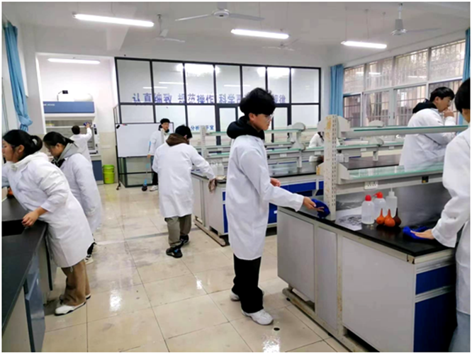 劳动教育活动以班级为单位,每个班分别安排负责老师,我支部张琳、付凌、蓝应东三位老师担任负责老师。劳动实践内容包括打扫学院致学楼和致理楼公共区域卫生和教学实验室卫生,以及实验仪器设备和实验器材整理摆放等。劳动教育活动旨在引导员工热爱劳动、尊重劳动,甘于奉献,激发同学们的专业学习热情和增强专业兴趣。同学们非常认真细致,任劳任怨,将实验室和公共区域打扫得干净整洁,为大家提供了清爽舒适的学习环境。