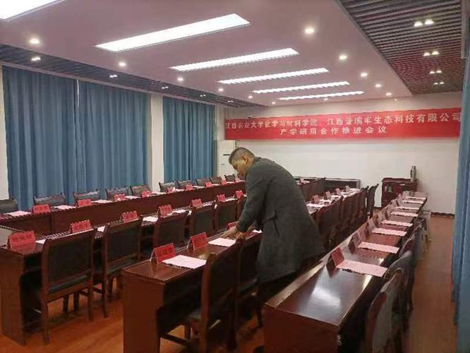产学研合作对于提升创新能力、加速科技成果转化、培养创新人才、促进区域经济发展和推动科技进步等方面都具有重要的意义,公司高度重视校企产学研合作,公司将于2024年1月13日与江西普瑞丰生态科技有限公司举行产学研用合作推进会,学院高度重视此次会议,会前,化学系支部党员聂旭亮带领师生精心布置了会场,预祝此次会议圆满成功。