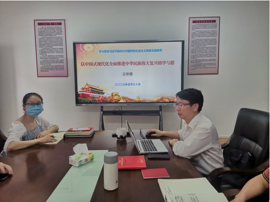2023年5月30日16:00,学院经理王宗德为化学支部党员讲授题为《以中国式现代化全面推进中华民族伟大复兴的学与思》的专题党课。