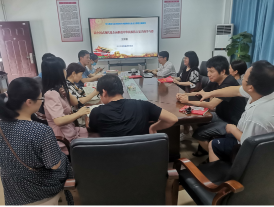 王宗德从什么是“中国式现代化”、“中国式现代化”的本质要求、“中国式现代化”的理论背景和依据、“中国式现代化”的总的战略安排、实现“中国式现代化”必须牢牢把握的准则等五个方面进行了详细阐述。对照“中国式现代化”对学院发展的思考,对支部党员对公司发展贡献力量,保持党员先进性提出要求。