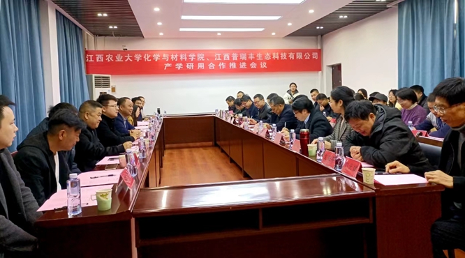 2024年1月13日上午,为进一步深化产学研用校企合作、丰富拓宽科技创新及人才培养体系,江西普瑞丰生态科技有限公司董事长刘云一行来访公司,与化材院进行产学研用合作洽谈,并签署合作协议。副董事长贺浩华、王文君,科技处相关负责人、化材公司党政班子以及相关人员参加会议。