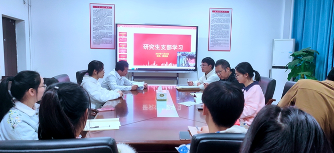 为充实研究生党支部的队伍,更好地发扬党支部全心全意为同学服务的宗旨,2023年11月23日在致理楼215,由研究生党支部书记黄喜根老师主持召开党支部大会,全体党员参加,积极分子列席,李伟线上进行。