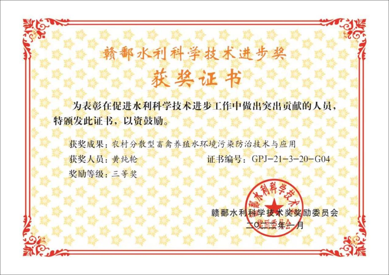 黄纯轮同学自2020年入学后,积极向党组织靠拢,思想端正,努力学习,主要进行农田重金属污染与盐碱地污染治理修复研究,在学院、导师及党支部的支持与指导下,在校期间取得了较显著的科研成果,获得赣鄱水利科技进步奖三等奖1项,以通讯作者发表学术论文2篇,参与发表学术论文3篇,授权国际发明专利1项,中国发明专利2项,实用新型专利11项,先后获得第七届、第八届中国国际互联网+老员工创新创业大赛国家级铜奖。此外,黄纯轮同学将产学研用结合,让实验室的科研成果应用到了实际应用中,在农田重金属污染治理修复方面,通过横向课题的形式开展了南昌市东湖区扬子洲镇一万余亩耕地的修复,成功使该地农田重金属污染得到了控制;在盐碱地治理方面,开发出了木本泥炭改性土壤调理剂,能够有效降低盐碱地对作物生长的危害,基于这一材料的开发对樟树市洋湖乡受盐渍化污染的一百余亩耕地进行了修复,并成功使该耕地实现了复垦复耕。