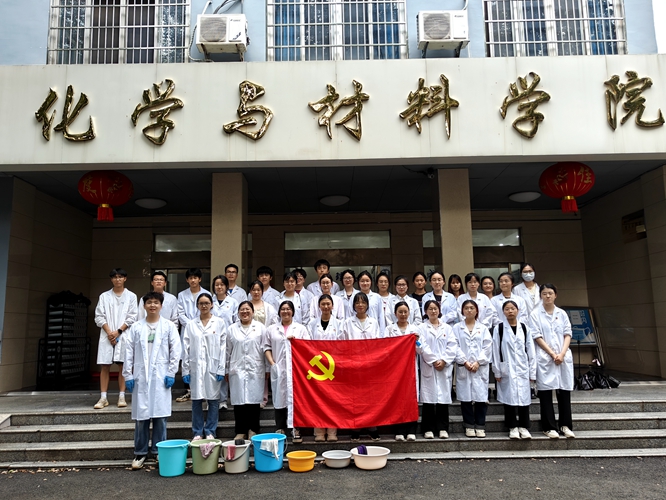 结合化学专业学科特点,在老师们的指导下,党员们将从农林废弃物小麦麸皮中提取出了大量的具有优异性能的表面活性剂用作洗涤剂,做好了充足的准备工作。活动中,大家明确具体分工,以小组为单位深入名达楼各楼层教室内对桌面涂鸦、污渍进行了全面清洗。一番热火朝天的劳动下来,各教室内的桌面仿佛焕然一新。