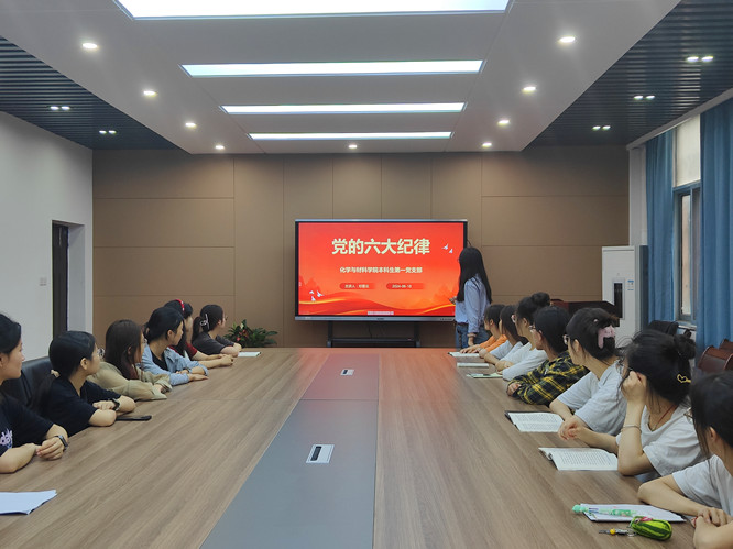 2024年6月18日18:30,本科生第一党支部书记邓雪云以“学深悟透党的六大纪律”为题,为支部党员讲授纪律党课。