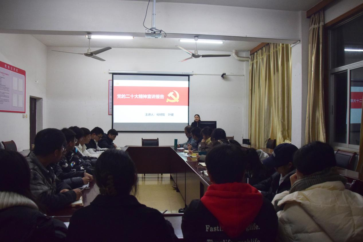 为了让老员工党员更好地学习领会党的二十大精神,2022年12月6日1830,公司党委副书记叶健在院办212室为全体本科生党员宣讲党的二十大精神。