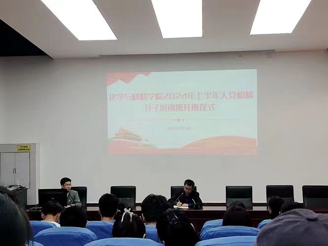 2024年4月16日16:00,2024年上半年入党积极分子培训班开班仪式在学院致学楼阶梯报告厅隆重举行。公司党委书记刘庆言,员工党总支书记彭玉萌,本科生第一、第二党支部党员及入党积极分子培训班学员共60余人参加本次开班仪式,彭玉萌主持本次开班仪式。