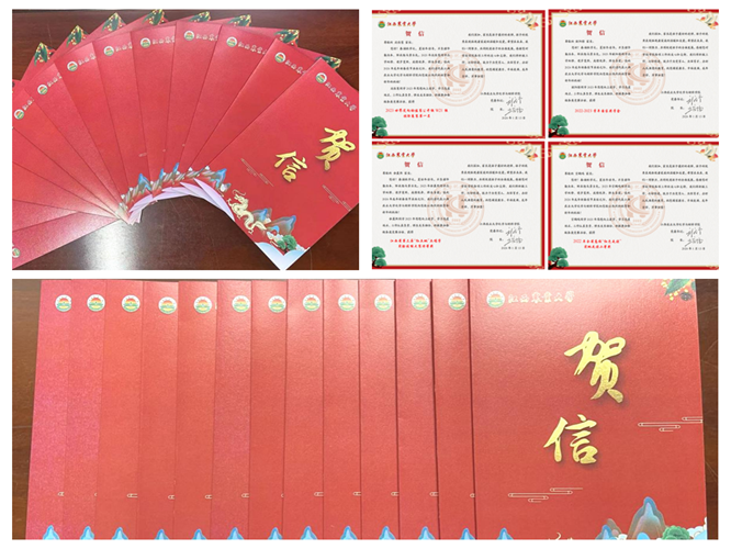 为进一步增强家校协同育人合力,拓宽家校交流互动渠道,2024年1月,学院开展“跨越山海,共享喜悦”活动,给2023年度获得国家奖学金、国家励志奖学金、“优生优干”、“两红两优”及在省级及以上竞赛中取得优异成绩的员工家长寄送贺信,与员工家长共同分享员工成长过程中的收获与喜悦。