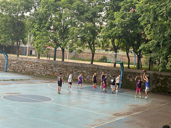 师生友谊赛先进行了四节,最后附加了一节,每节十分钟。整场比赛虽然充斥着紧张的竞争氛围,但也在师生间的竞技互动中洋溢着轻松愉悦的温情,双方尽展风采,各有精彩进球场面。赛后,两队合影留念,本次篮球友谊赛圆满落下帷幕。