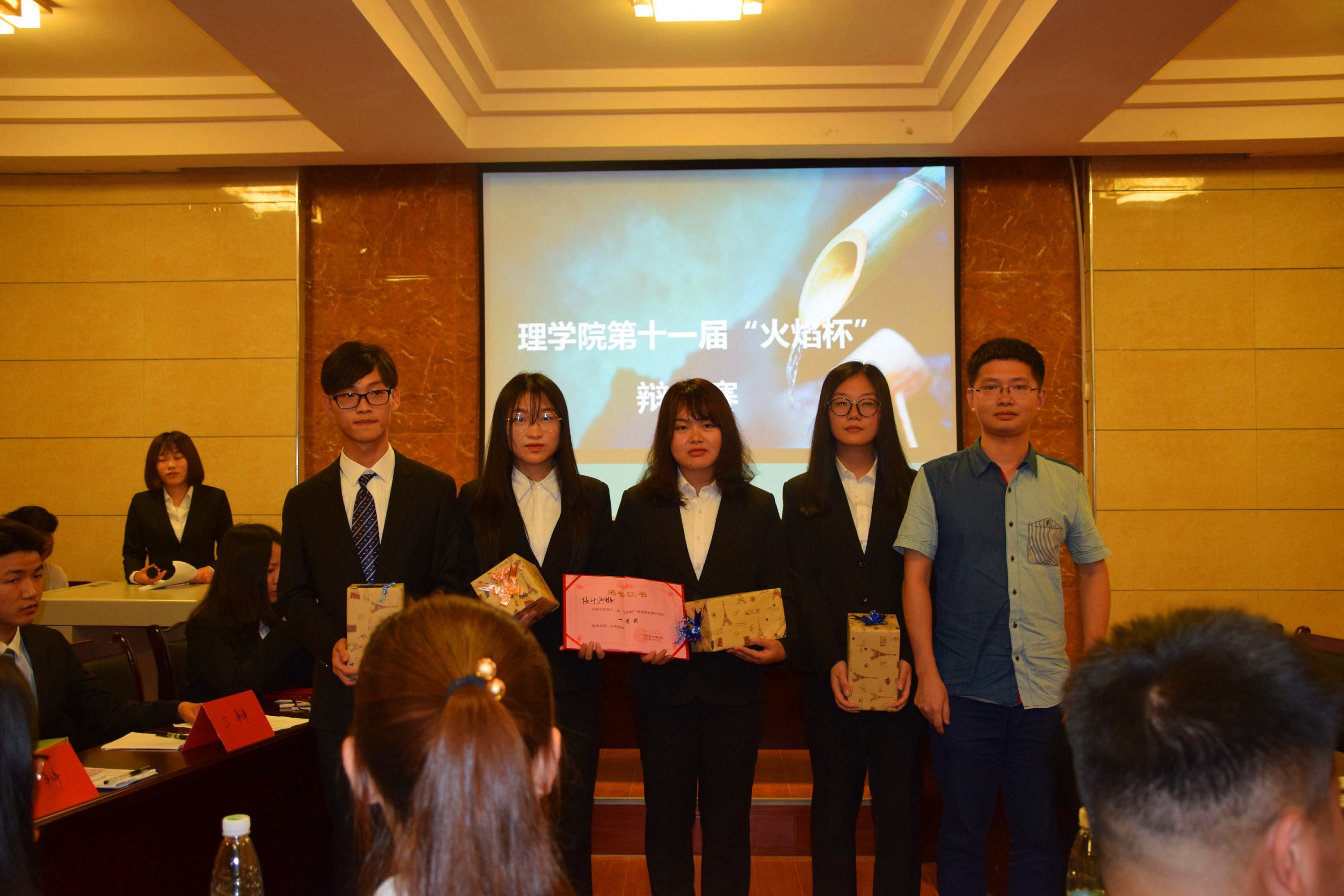 5月6日,公司第十一届“火焰杯”辩论赛决赛在学校老员工活动中心402举行。经过前期预赛阶段的“车轮战”,信计1701班代表队与应化1701班代表队在决赛舞台相遇,双方围绕“生活更需要激情/理智”这一辩题展开激烈角逐,为现场的观众奉献了一场思维的盛宴。最终,信计1701班荣登冠军宝座,应化1703班王邦根获得“最佳辩手”称号,王邦根、郭伟敏、刘晓方及李平获得“优秀辩手”称号。