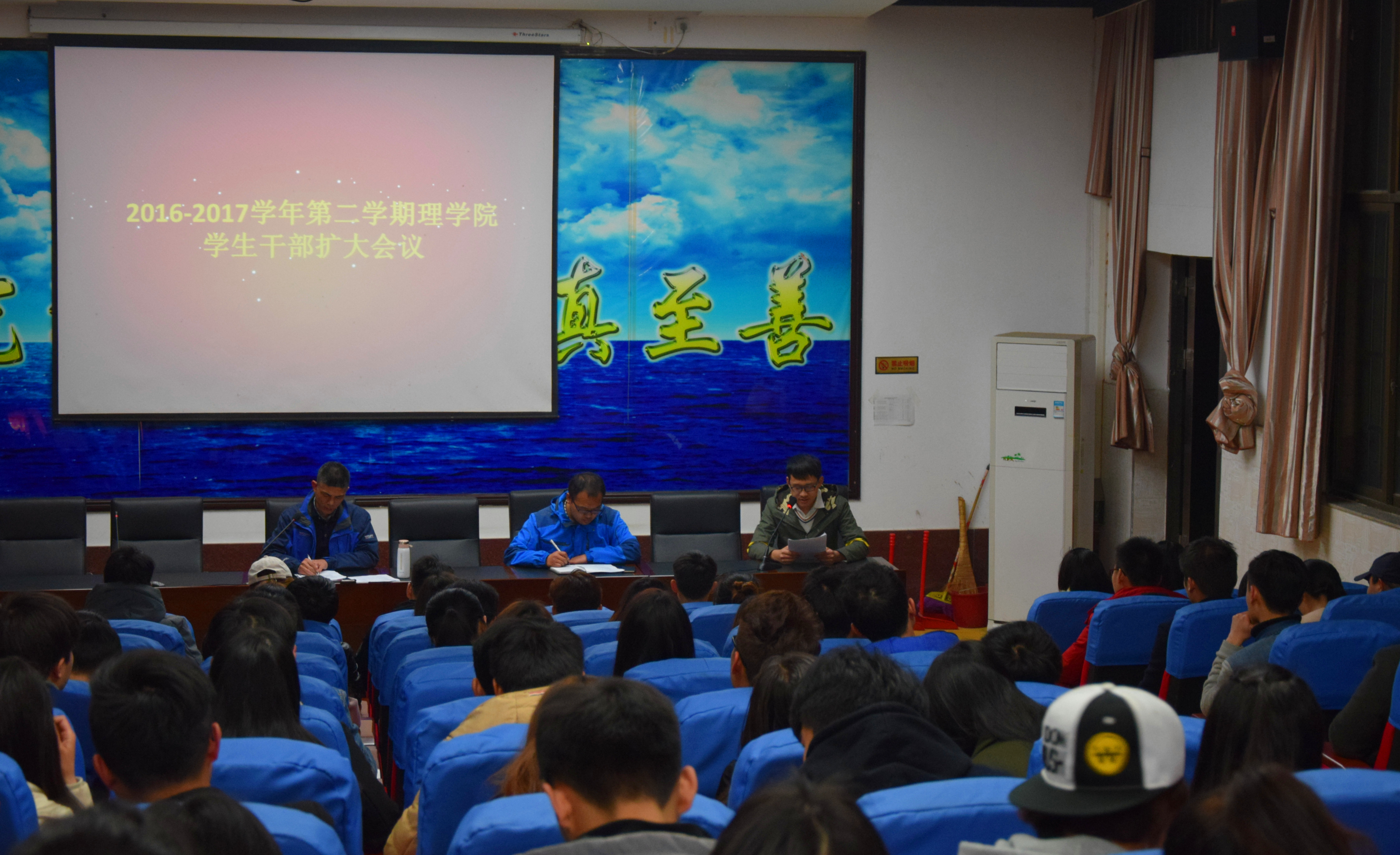 2月14日,新学伊始,理学院召开2016-2017学年第二学期理学院员工干部扩大会议。团委员工会副部及以上委员,理学院各班班长、团支书、学习委员和心理委员。理公司党委副书记周国平,学院辅导员廖超、胡文韬参加本次会议。会议由廖超主持。