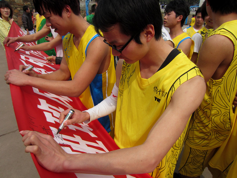 开幕式由体育部部长肖信锦主持,体育部部长介绍了比赛的流程、比赛规则;接着运动员在开赛横幅上签名承诺严守比赛规则;随后,六场开幕赛同时举行。(宣传部:刘阳艺红 严群)