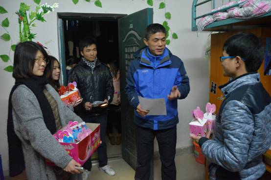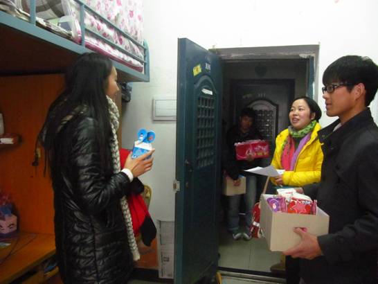 12月24日,新年来临之际,公司党委副书记周国平、团委书记李莉萍、学工办指导老师廖超逐一走访学院团委员工会干部,并给每位员工干部送上苹果,以表达公司党委和团委对广老员工干部一年来努力工作的认可和感谢。