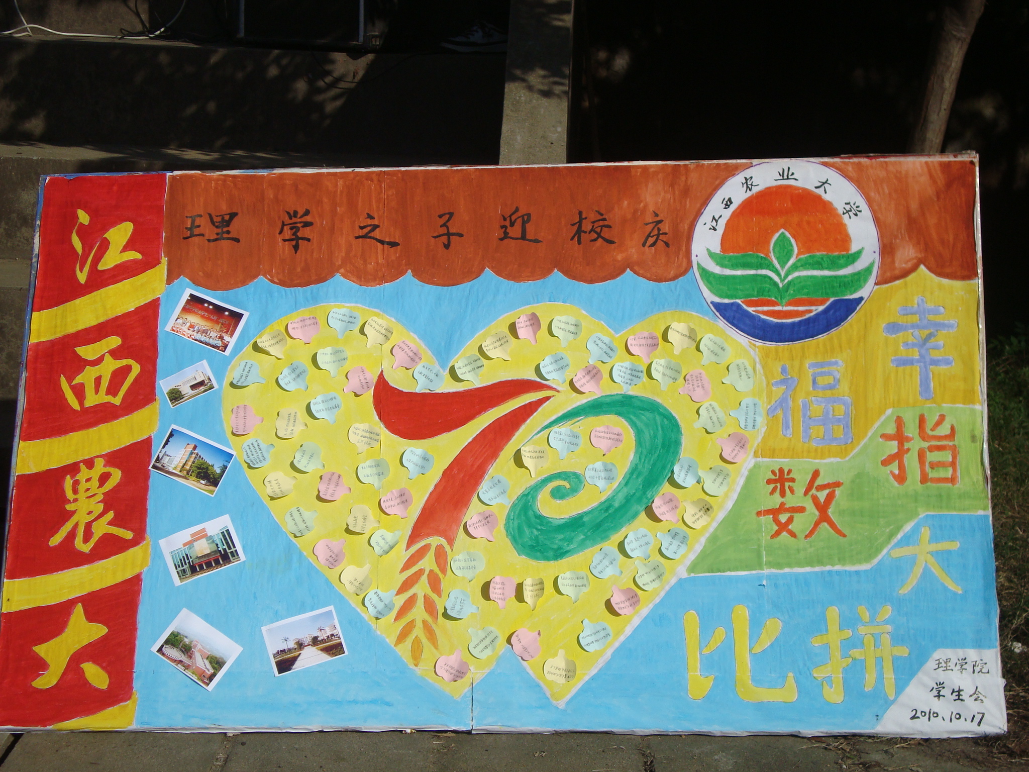 为迎接70周年校庆,建设寝室文化,促进同学之间的了解,理学院员工会生活部举办了以“理学之子迎校庆,幸福指数大比拼”为主题的寝室文化活动。