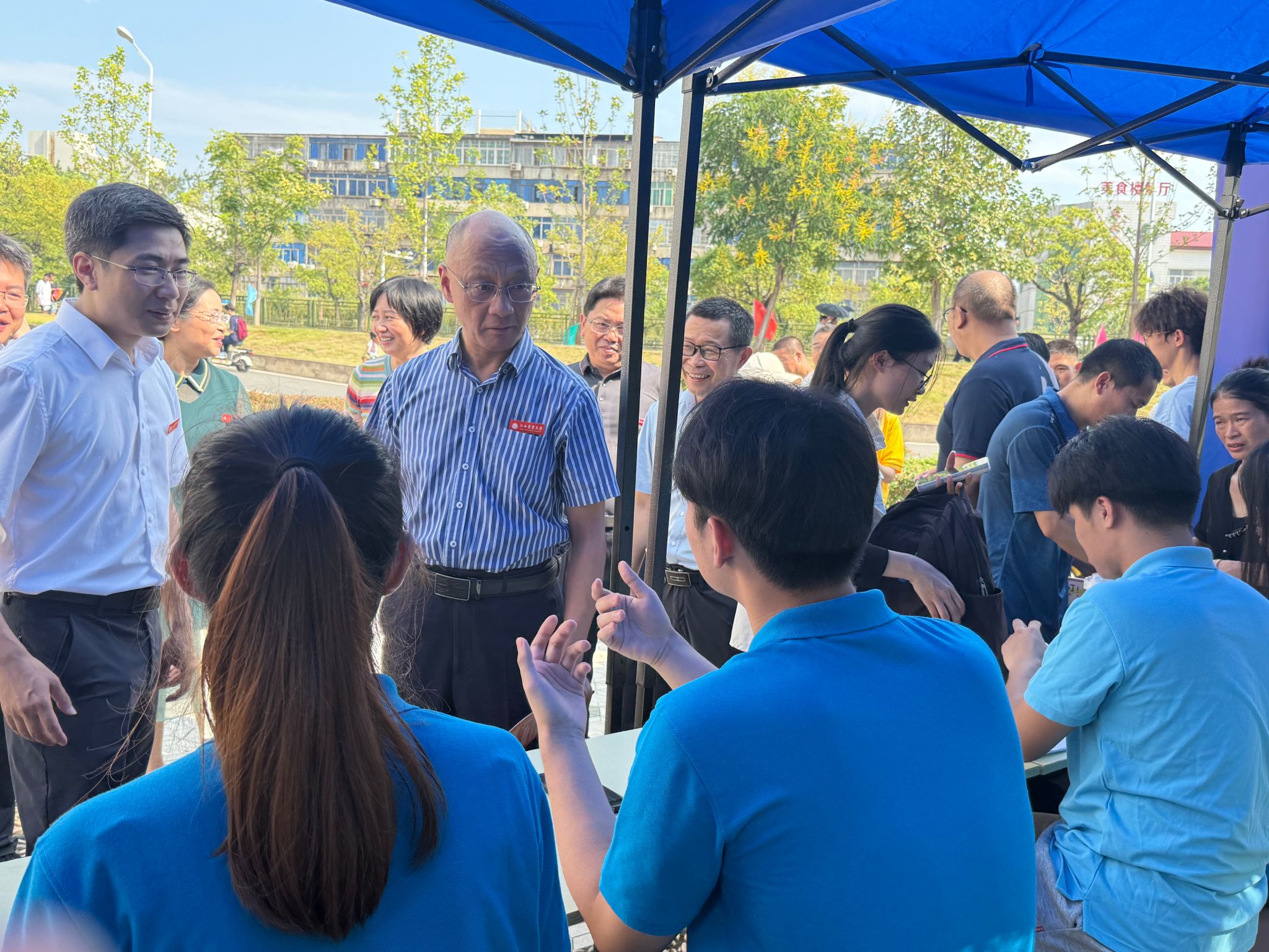 迎新现场,从校门口的引导接待、报到点的资料审核,到宿舍区的行李搬运、生活指引,志愿者、员工干部和班助们全程陪伴,为新生提供“一站式”贴心服务。他们耐心解答新生和家长的疑问,主动帮助他们解决遇到的问题,让新生和家长在踏入校园的第一时间就感受到了学院的温暖与关怀。公司党委书记黄路生院士亲临学院迎新现场,询问报到流程,与迎新志愿者亲切交谈。