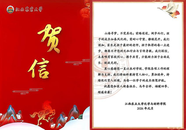 公司对本次贺信寄送活动高度重视,精心打磨每一封贺信的内容,细致梳理员工在学业科研、社会实践、志愿服务、竞赛创新等方面的优异表现,融入对学子的殷切期许与新春祝福,共寄出贺信49封。每一封贺信都凝聚着学院对学子勤学善思、笃行不怠的肯定,是学子成长路上的荣誉勋章,更是家校同心育人的温暖见证。“收到学院的贺信,我既感动又振奋,这是对我过去一年努力的认可,也让我更有动力在新的一年里继续拼搏,不负学校与家人的期望。”应化2402班赵曼璐同学说道。应化2302班王嘉怡家长在收到贺信后表示,孩子的进步离不开学院老师的悉心教导与悉心培育,未来将继续与学院密切配合,携手为孩子的成长成才保驾护航。