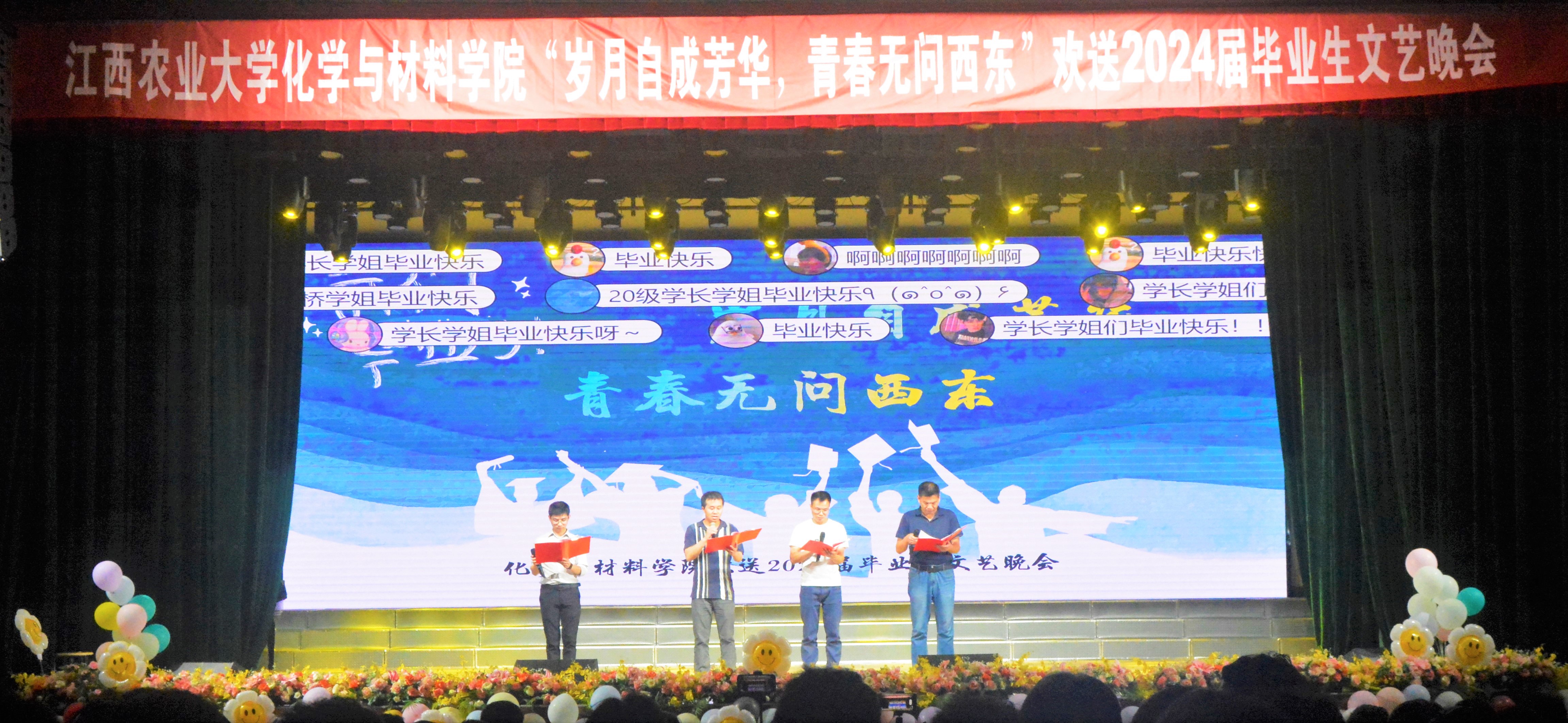 四年前我们迎着炎热共聚江农,四年后我们伴着短暂的清凉各自迎接酷暑,在疾风暴雨骤停的夜晚,凉风轻抚着我们,似乎也在感受我们的不舍。2024年5月11日晚7点,校大礼堂灯光璀璨、气氛热烈,公司“岁月自成芳华,青春无问西东”欢送2024届毕业生文艺晚会在此隆重举行。公司党政领导、全体毕业班班主任、辅导员及全体员工参加晚会。