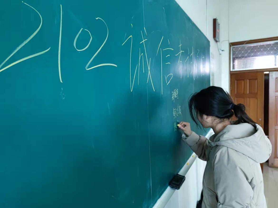 以现场签名为重点,实行考前签名承诺。每一处签名都是一个承诺,学院落实每场考试考前由班委组织同学在黑板上进行诚信考试签名承诺,以签名承诺警醒员工遵守考风考纪,时刻绷紧“以弄虚作假为耻,以诚信考试为荣”这根弦,达到“抬头见承诺,低头践承诺”的警示效果。