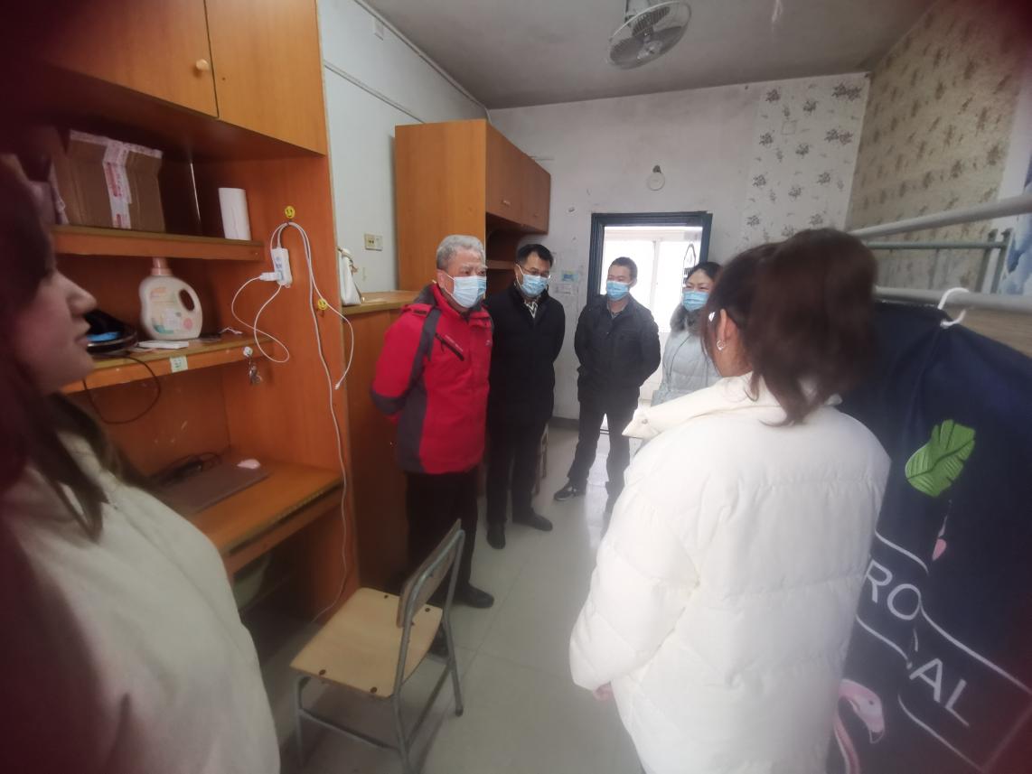 “假期饮食还方便吗?想不想家?生活上有没有困难?”在员工寝室,公司党委书记周阳与5名留校员工亲切交谈,关心询问留校员工各自家乡的疫情现状和留校生活情况,认真倾听员工需求。经理王义华鼓励同学们要充分利用假期给自己“加油充电”,努力学习专业知识和培养兴趣爱好。公司党委副书记叶健叮嘱同学们要互相关心关爱,和家长、老师保持联系,有困难及时向学院反映,遵守疫情防控规定,共同度过安全、温馨、祥和的“校园新年”。副经理黄长干勉励同学们多阅读多思考,在相对清静的环境下认真规划未来的老员工活。