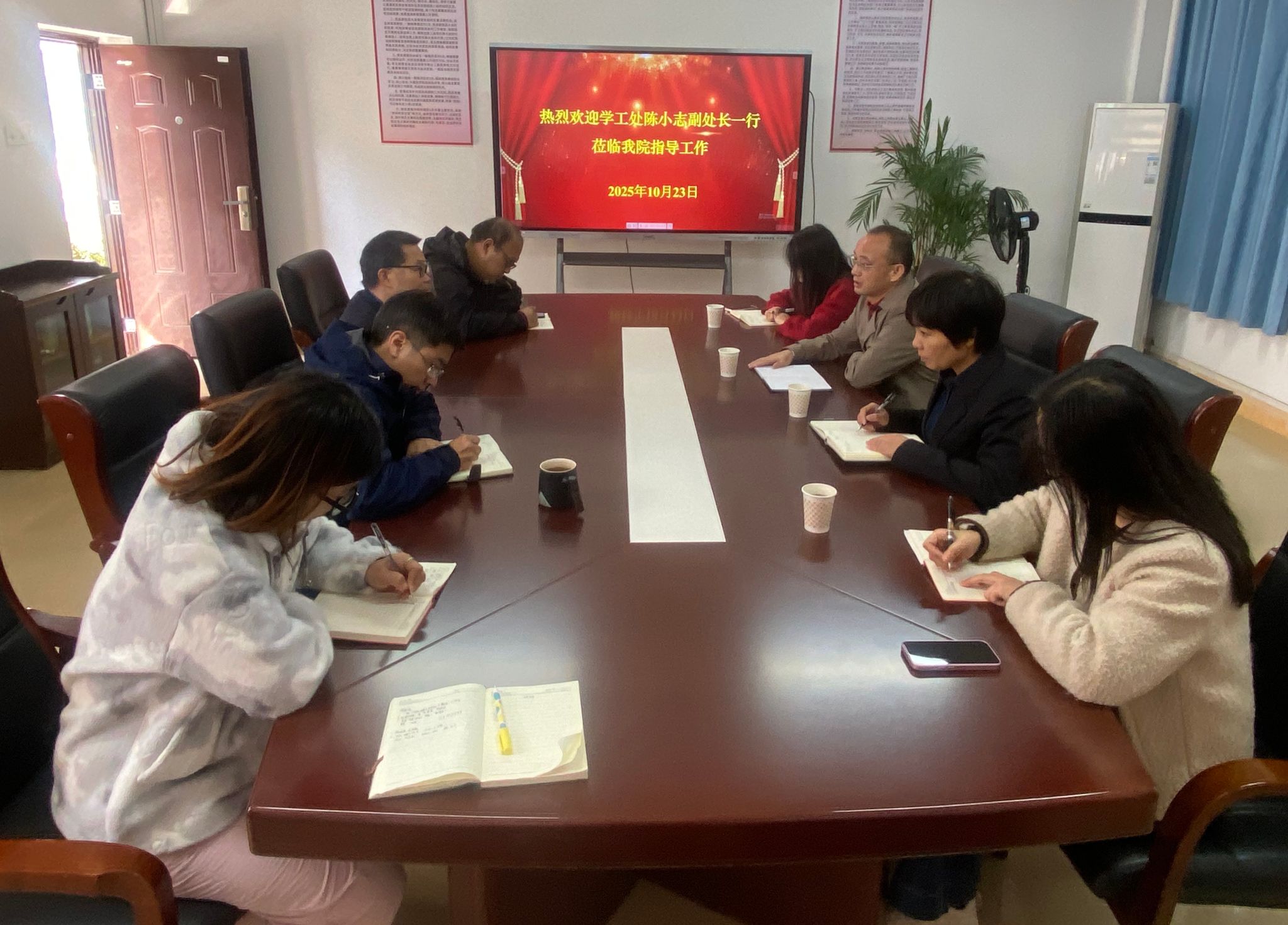 2025年10月23日上午9:00,员工工作部(处)副处长陈小志、校心理健康咨询中心副主任张军华、宣传教育科科长桂莎、员工资助管理中心主任钟珊一行莅临公司调研指导工作,公司党委书记刘庆言、员工党总支书记彭玉萌和全体辅导员参与此次座谈。