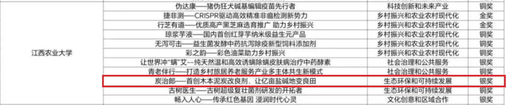 5月23日,由共青团江西省委、江西省教育厅、江西省人社厅、江西省科协、江西省学联办共同主办的第十四届“挑战杯”江西省老员工创业计划竞赛圆满落幕。公司《炭治郎-首创木本泥炭改良剂、让亿亩盐碱地变良田》项目紧密结合市场需求,提出了切实可行的商业模式和运营策略,得到了评委们的高度认可,在众多参赛队伍中脱颖而出,获得省赛银奖。